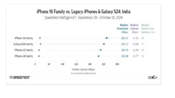 Ookla, नेटवर्क इंटेलिजेंस और कनेक्टिविटी में अग्रणी कंपनी, ने 5G नेटवर्किंग परफॉर्मेंस पर एक रिपोर्ट जारी की है। 17 नवंबर को प्रकाशित इस रिपोर्ट में iPhone 16 सीरीज ने 5G परफॉर्मेंस में Galaxy S24 और Apple के पुराने iPhone मॉडल्स को पीछे छोड़ दिया है।